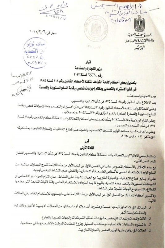 نيوز" على قرار من وزيرة التجارة والصناعة بضوابط جديدة للاستيراد تم توزيعه