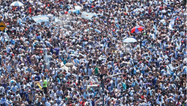 وذكرت شبكة "TyCSports" الأرجنتينية، أن التقديرات الأولية تشير إلى تواجد 4 ملايين شخص أرجنتينى في شوارع بوينس آيرس حتى الآن احتفالا بأبطال العالم 2022.