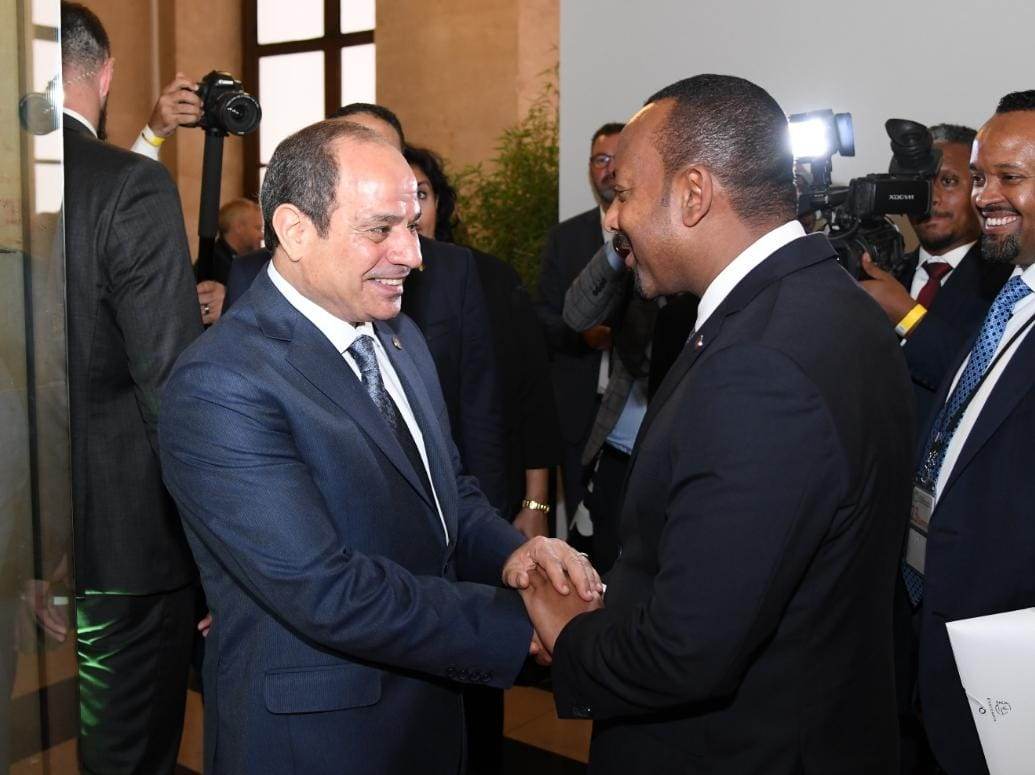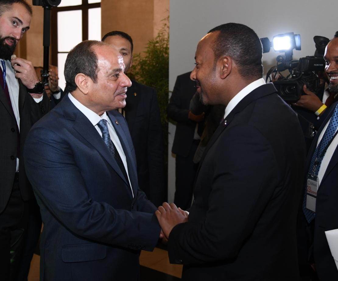 الرئيس السيسي يصافح آبي أحمد على هامش المشاركة في قمة باريس (صور)