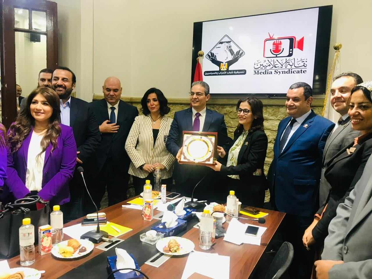 وفي نهاية اللقاء كرم نقيب الإعلاميين وفد تنسيقية شباب الأحزاب والسياسين باهداء درع النقابه لهم، وذلك تقديرا لدورهم في خدمة المجتمع المصري سياسيا واجتماعيا.