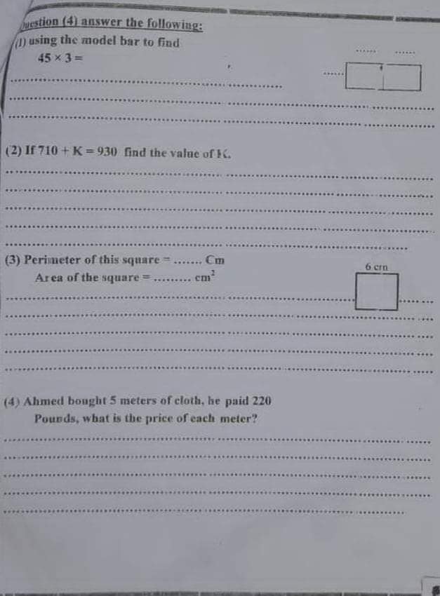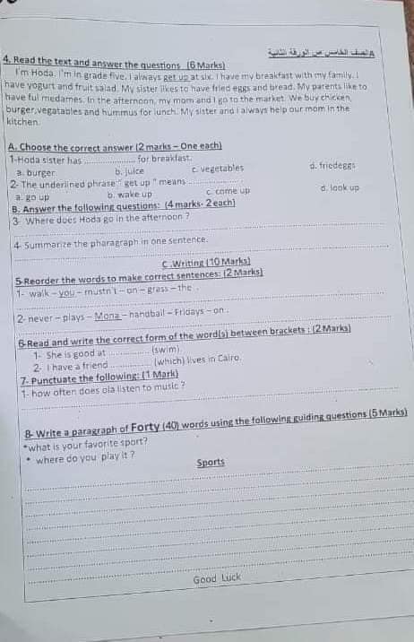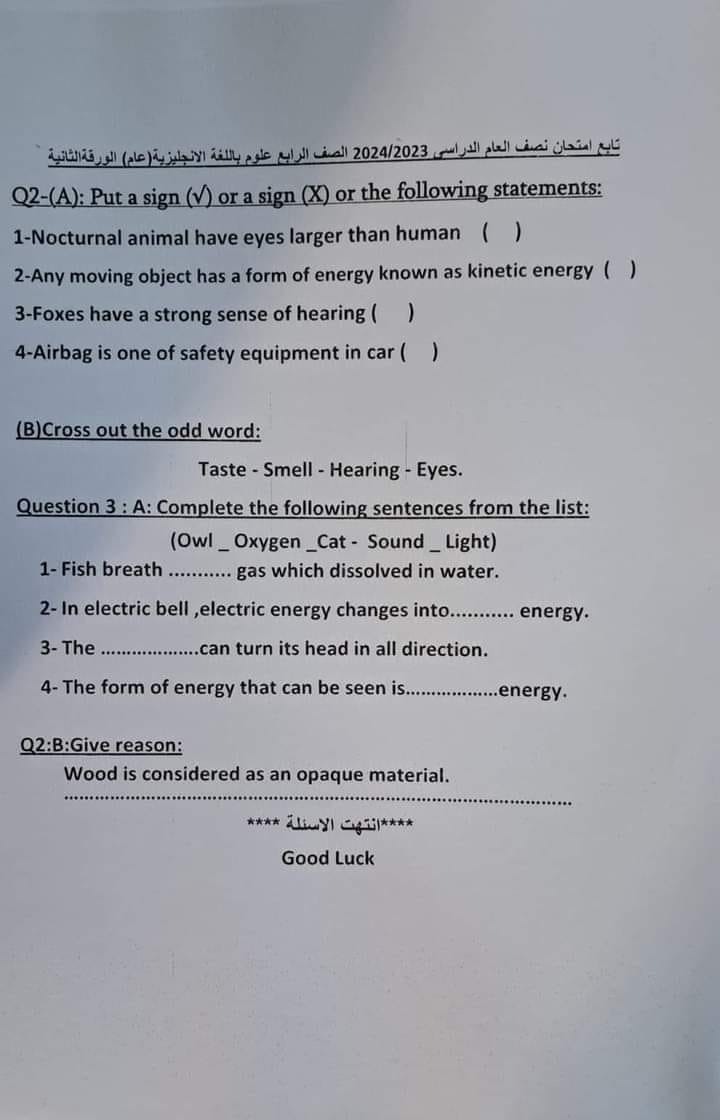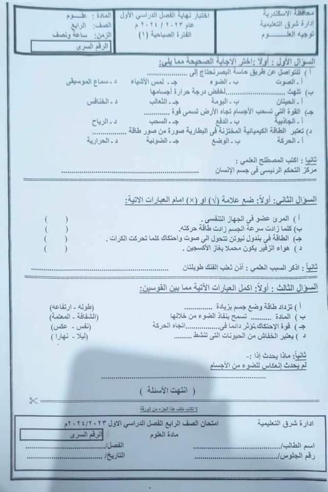 وحددت وزارة التربية والتعليم والتعليم الفني، مواصفات الورقة الامتحانية لطلاب الرابع والخامس والسادس الابتدائي والتي تضمنت الآتي: