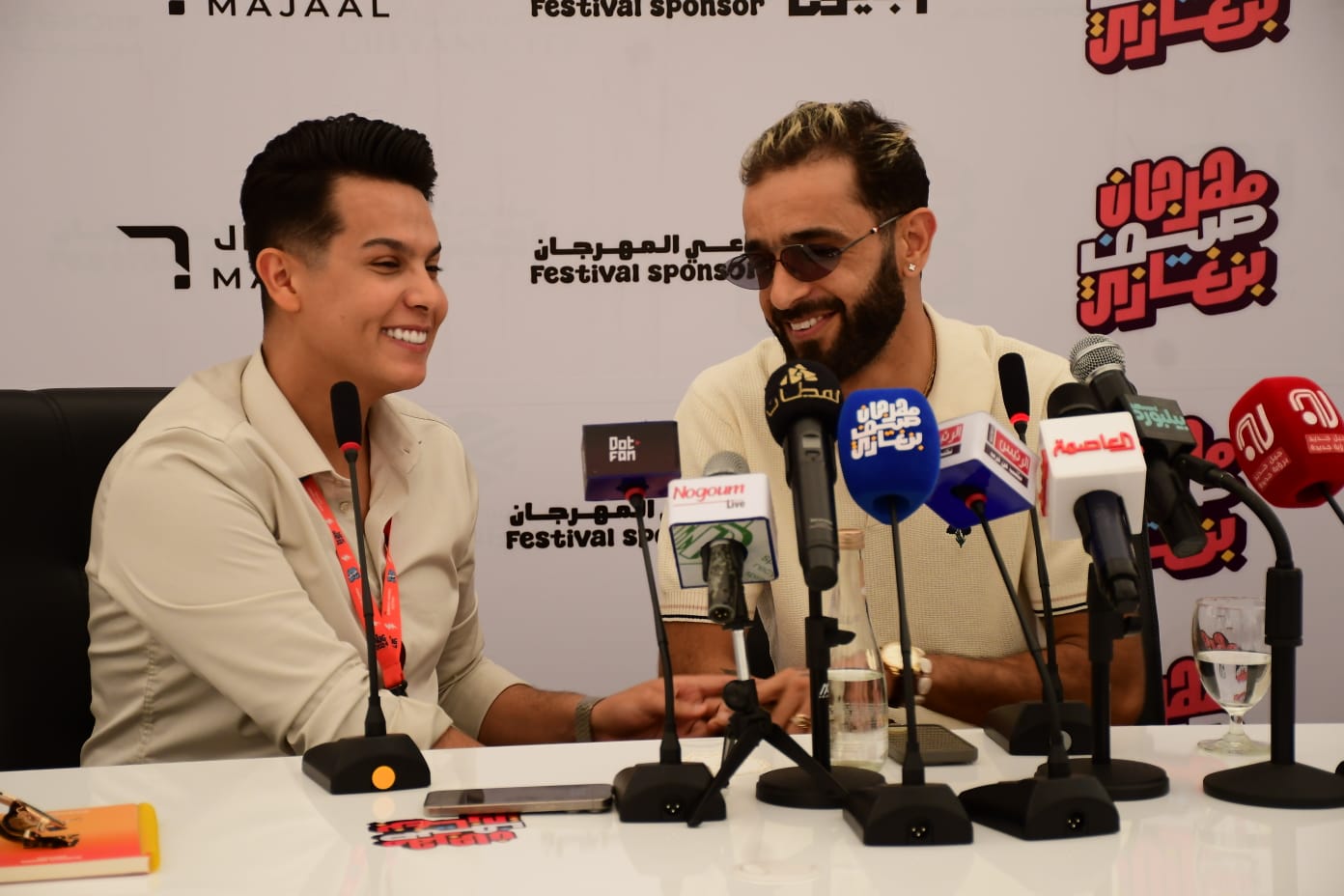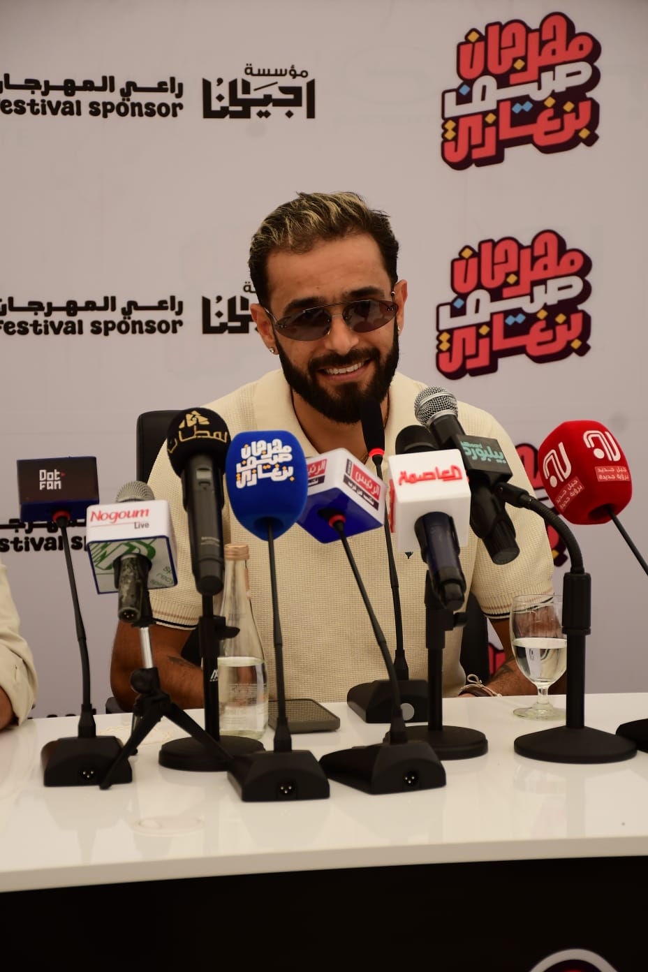 أقيم اليوم مؤتمر صحفي على هامش مهرجان صيف بنغازي لنجم الراب التونسي نوردو، وقدم المؤتمر الإعلامي رامي المنصوري، وكشف النجمان عن كواليس استعداداتهم لحفلة اليوم، والتي تقام بمجمع سليمان الظراط بحضور ما يزيد عن 3 آلاف شاب.