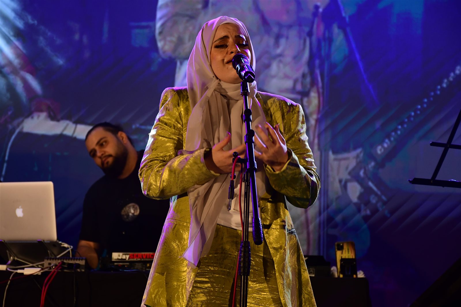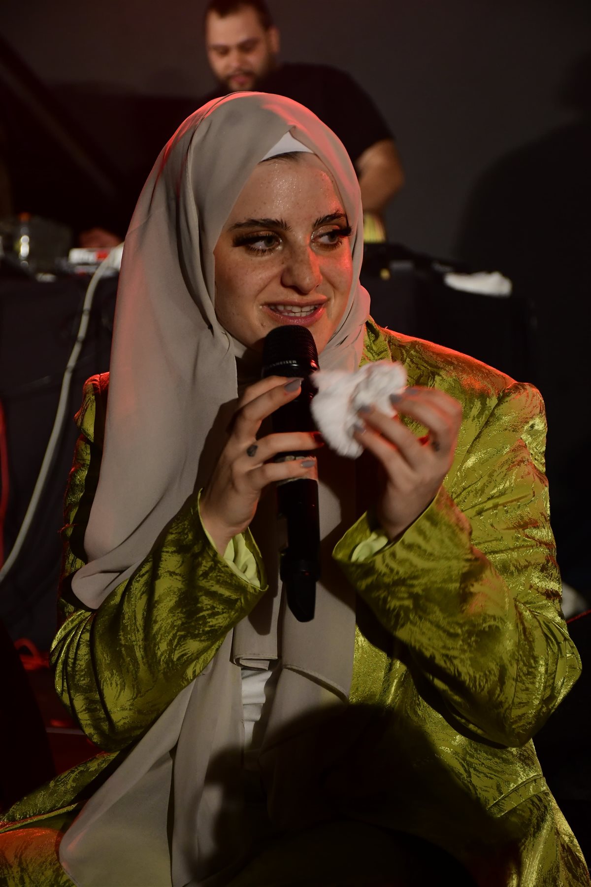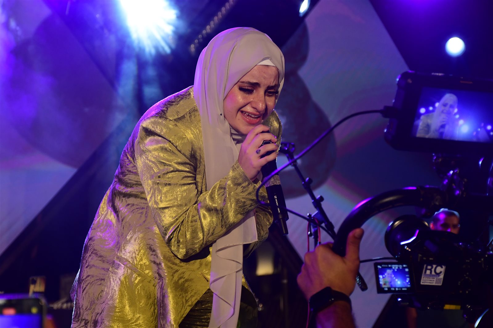 - غالية تنزل من المسرح للجمهور وتعزف على الجيتار