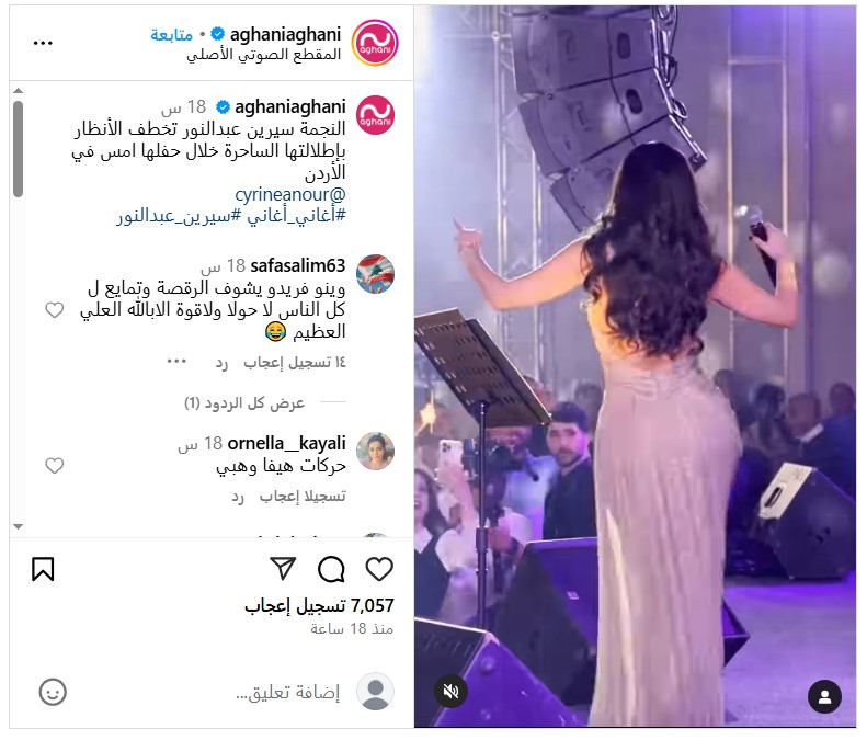 خطفت الفنانة سيرين عبد النور الأنظار بفستان مكشوف وحركات هيفاء وهبي وذلك خلال حفلها في دولة الأردن التي أُقيمت بمناسبة عيد الفطر، موقفًا غير متوقع بعدما اقتحم أحد المعجبين المسرح لالتقاط صورة معها.