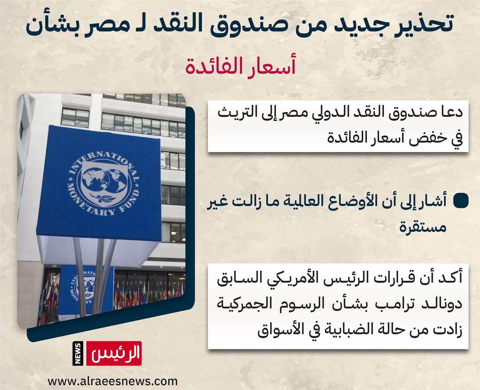 دعا صندوق النقد الدولي، مصر إلى التريث في مسار خفض أسعار الفائدة، مشيرًا إلى أن الأوضاع العالمية لا تزال غير مستقرة، خاصة بعد قرارات الرئيس الأمريكي السابق دونالد ترامب الأخيرة بشأن الرسوم الجمركية، والتي أثارت حالة من الضبابية في الأسواق.