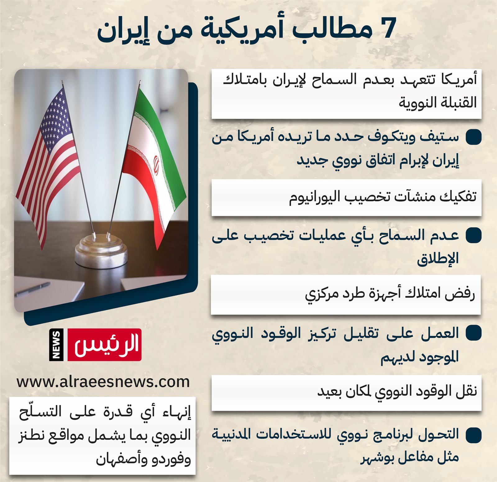 7 مطالب أمريكية من إيران لإتمام المفاوضات النووية