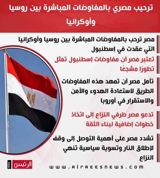 رحبت جمهورية مصر العربية بالمفاوضات المباشرة بين روسيا وأوكرانيا في إسطنبول.