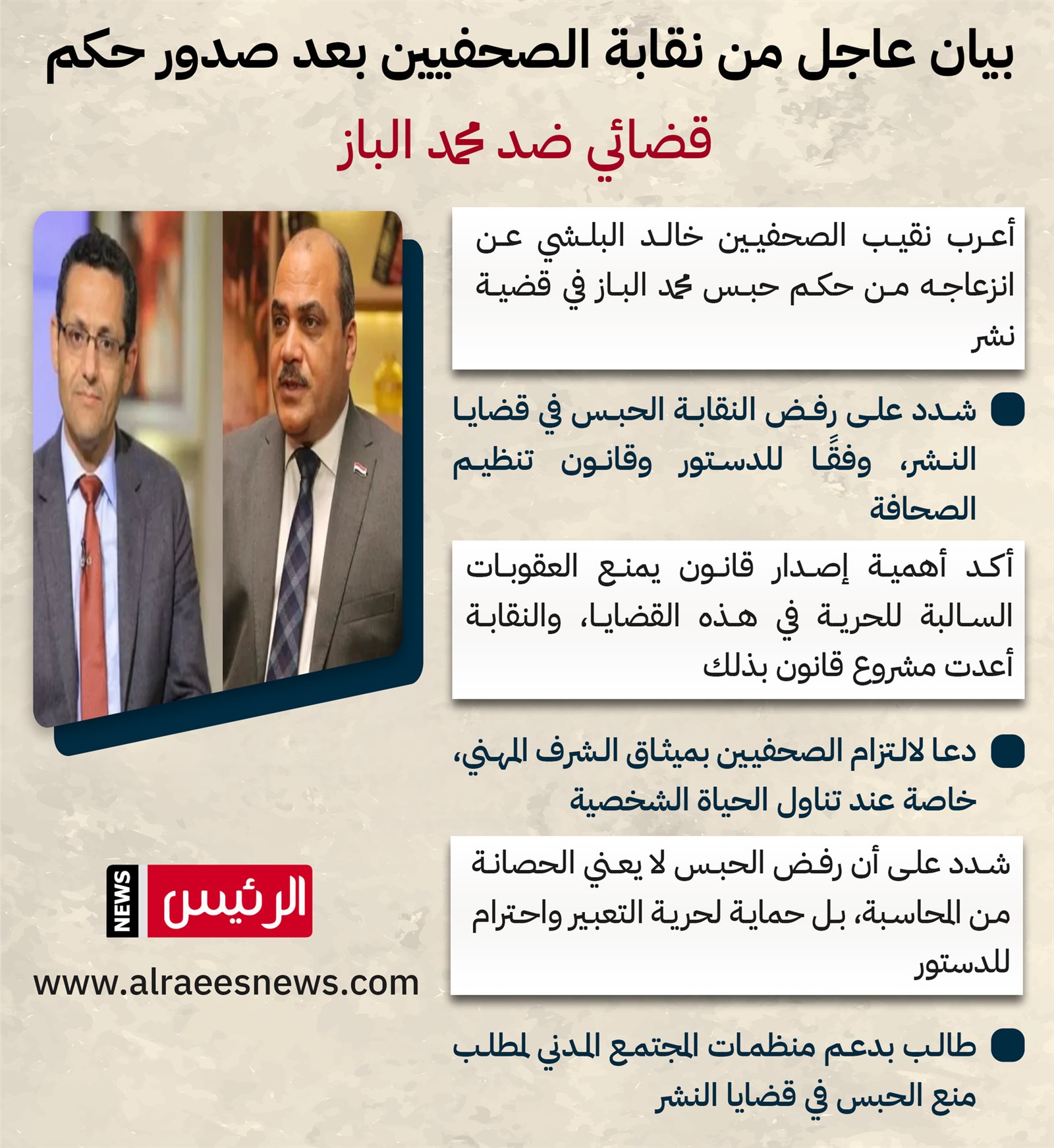 بيان عاجل من نقابة الصحفيين بعد صدور حكم قضائي ضد محمد الباز