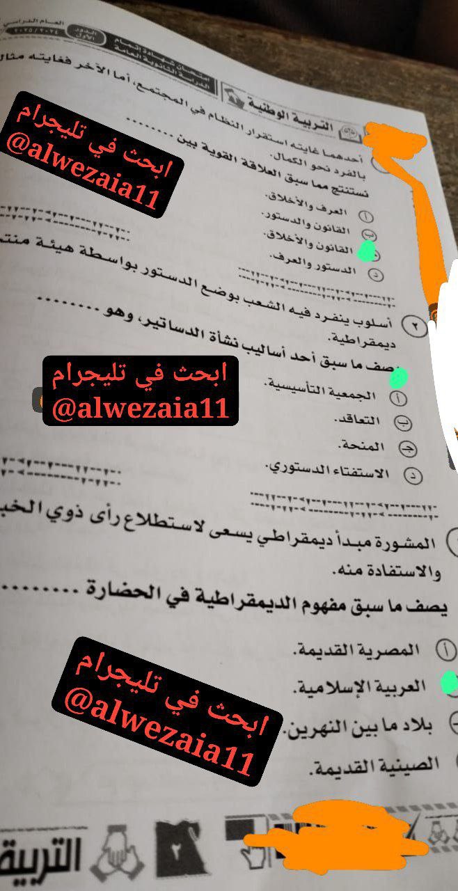 - حل أسئلة امتحان التربية الوطنية لطلاب الصف الثالث الثانوي 2025