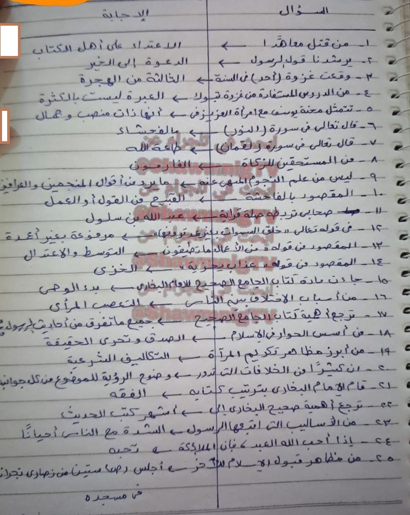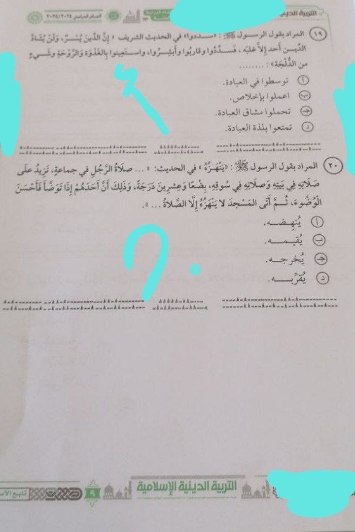 - إجابة امتحان التربية الدينية لطلاب الثانوية العامة 2025