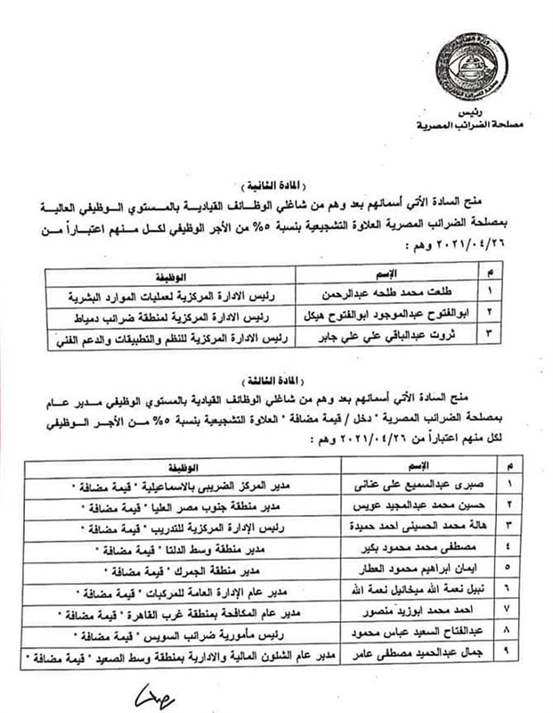 عيدية الضرائب.. علاوة تشجيعية 5% من الأجر الوظيفي للقيادات