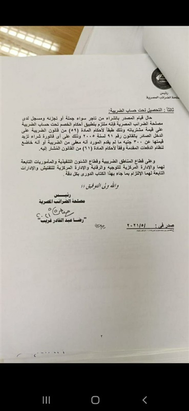 وفي حالة الشراء من تاجر سواء جملة أو تجزئة يقوم بتفعيل الخصم تحت حساب الضريبة للمشتريات اكثر من 300جنيه الا اذا كان خاضع لنظام الدفعات المقدمة أو معفى من الضريبة.