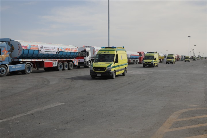 مساعدات مصرية في طريقها لقطاع غزة بتوجيه من الرئيس السيسي