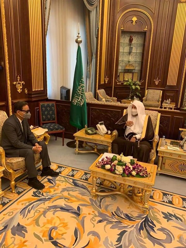 وقال آل الشيخ أنه التقى الرئيس السيسي في آخر زيارة له لمصر، وأشاد بحسن لقاء الرئيس وحفاوته وترحيبه وأنه طلب منه ومن الوفد السعودي زيارة المشروعات الكبرى التي يتم تنفيذها في مصر، خصوصاً الصوب الزراعية التي ساعدت في القضاء على الفجوة الغذائية ووفرت الغذاء وكذلك قناة السويس الجديدة وأهميتها لمصر والعالم.