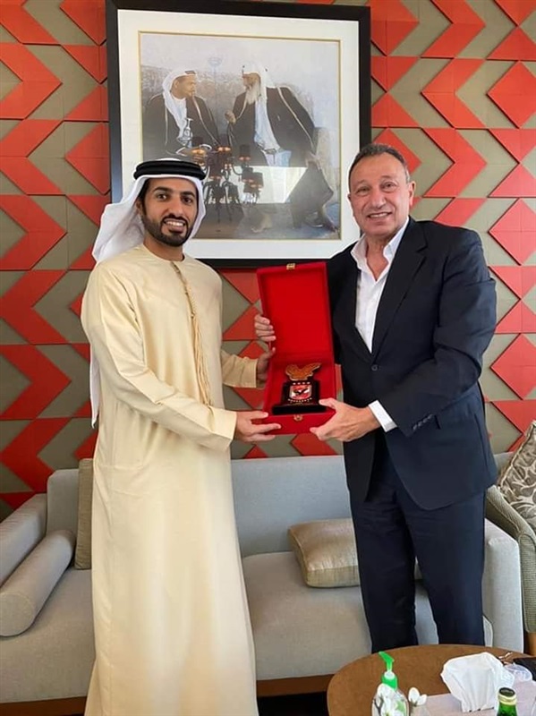 ظهر محمود الخطيب، رئيس مجلس إدارة النادي الأهلي، في ضيافة راشد بن حميد النعيمي، رئيس اتحاد الإمارات لكرة القدم، داخل الاتحاد الإماراتي، وذلك بعد أيام من تتويج فريق الكرة الأول بالنادي الأهلي بكأس السوبر الأفريقي السابع في تاريخ النادي.