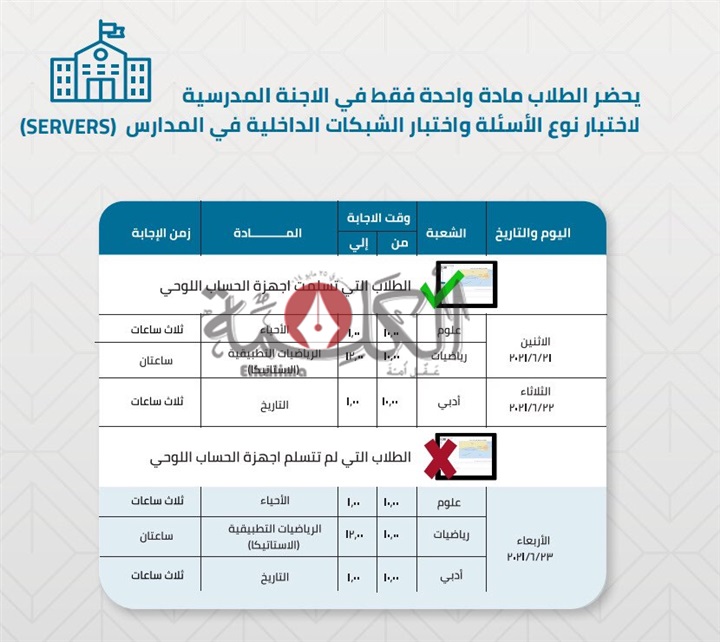 وأضاف شوقي، في مؤتمر صحفي اليوم السبت: "لا يمكن تأخير الامتحانات أكثر من ذلك بسبب أعمال التنسيق"، ذاكرا أن وقت الامتحان للطلاب النظاميين باللجان ستكون أطول من الموجودة في الجدول لاتاحة فرصة للطلاب للاجابة مرتين مرة في البابل شيت ومرة في التابلت، وسيتم إعطاء التعليمات الخاصة بالوقت للجان.