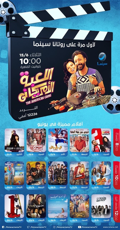 وفى يونيو خصصت روتانا مجموعه من افضل الافلام لعرضها فى وقت ذروة المشاهدة الثامنة والعاشرة والثانية عشر مساء يوم الجمعه ١١ يونيو تعرض روتانا فيلم عريس من جهة أمنيه لعادل امام وشريف منير الثامنة مساء وفى نفس اليوم فى العاشرة مساء تعرض عقدة الخواجه لحسن الرداد.