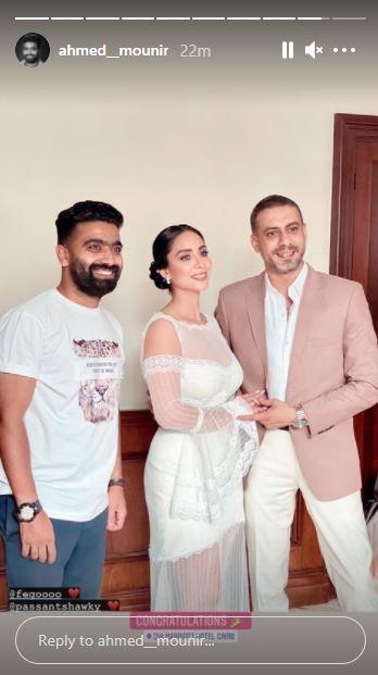 وظهر الفنان محمد فراج في صورة له برفقة بسنت شوقي من جلسة التصوير الخاصة بهما قبل انطلاق حفل الزفاف وارتدى محمد فراج خلالها بدلة "بيج" اللون، فيما طلت بسنت شوقي بالفستان الأبيض ومن المقرر أن ينطلق حفل الزفاف بعد قليل.