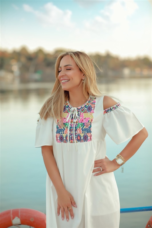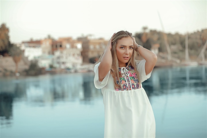 وتألقت ريم البارودي خلال جلسة التصوير بإطلالة هادئة وبسيطة مرتدية جلباب ليناسب الأجواء النيلية في أسوان، واعتمدت على ماكياج هاديء أبرز جمال وجهها، وشعر منسدل على كتفاها.