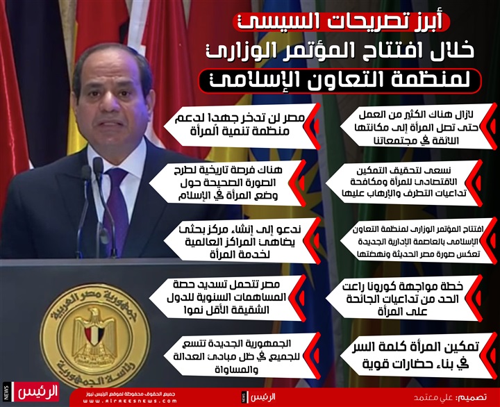 انفوجرافيك| أبرز تصريحات السيسي خلال افتتاح المؤتمر الوزاري لمنظمة التعاون الإسلامي