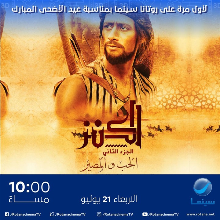 وفىً ثانىً أيام العيد الاربعاء ٢٢ يوليو وفى نفس الموعد العاشرة مساء تقدم روتانا الجزء الثانى من فيلم الكنز إخراج شريف عرفه وبطولة محمد سعد ومحمد رمضان وهند صبرى واحمد رزق واحمد حاتم ويواصل الجزء الثانىً ما انتهىً اليه الجزء الأول فى حكايات حتشبسوت فى العصر الفرعونىً، و على الزيبق فى العصر العثمانىً ، وبشر الكتاتنى رئيس القلم السياسى فى عهد الملكيه فى مصر والذى يواجه تحديات فى العمل والحب ويترك وصية لابنه يدله فيها على الطريق الى كنز .