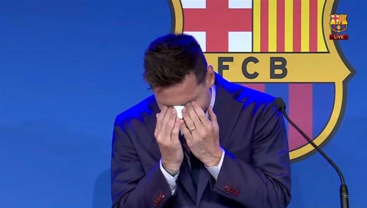 دخل الأرجنتيني ليونيل ميسي، نجم فريق برشلونة الإسباني، في نوبة بكاء شديدة خلال المؤتمر الصحفي المنعقد حاليًا في برشلونة للإعلان عن رحيل ميسي عن صفوف النادي بشكل رسمي، وقال ليونيل ميسي في المؤتمر الصحفي: «كنت أفكر في الأيام الأخيرة كثيرًا فيما أقوله لكنني لا أعرف ماذا سأقول، أمر صعب ما يحدث بعد كل هذه السنوات التي قضيتها في برشلونة".