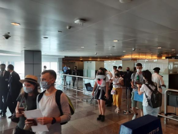 كانت سلطات المطار رفعت حالة الطوارئ، وشددت على تطبيق جميع الإجراءات الاحترازية والوقائية للسائحين القادمين، كما تم استقبال الرحلة بمدافع المياه ترحيبا بها.
