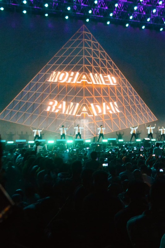 وقبيل ختام الحفل وجه رمضان كلمة للجمهور قائلا : " نمبر وان هو جمهوري .. وكل أغنية قدمتها بتمثل كل واحد منكم وليس تمجيد لذاتي " وسط المزيد من هتافات إعجاب الآلاف من محبيه.