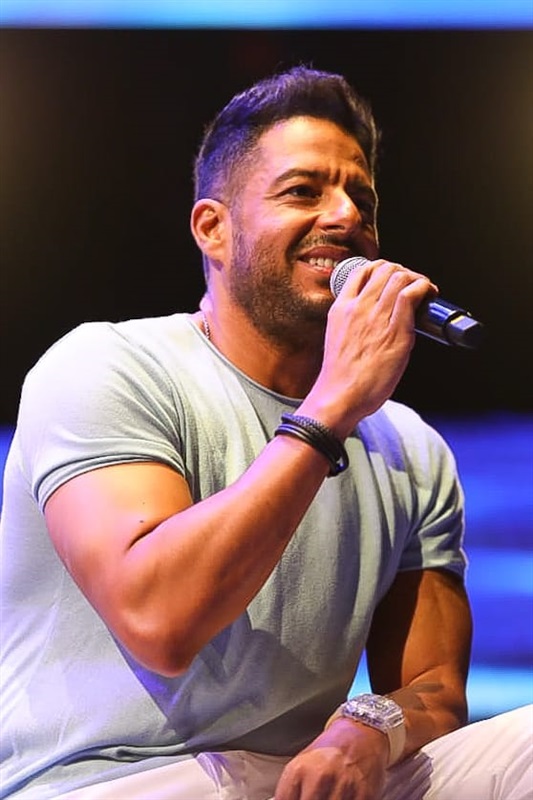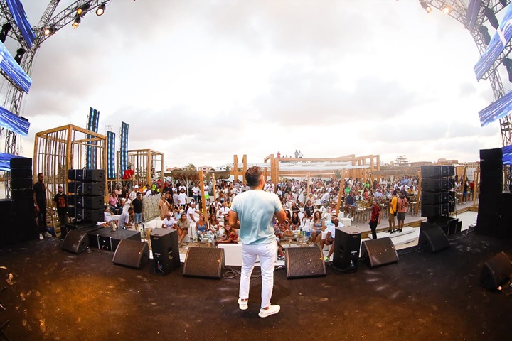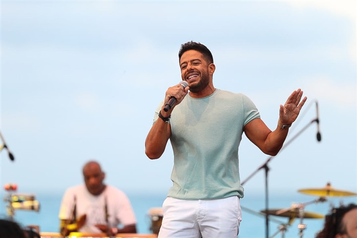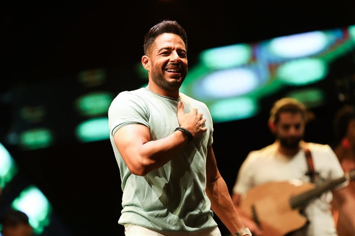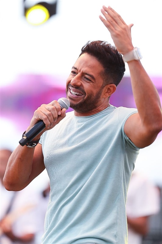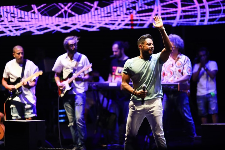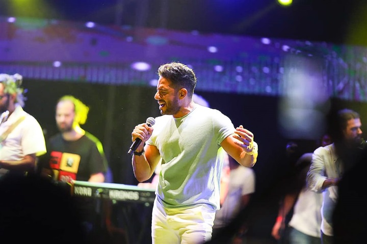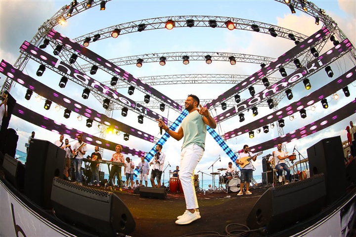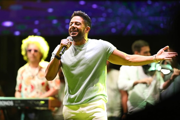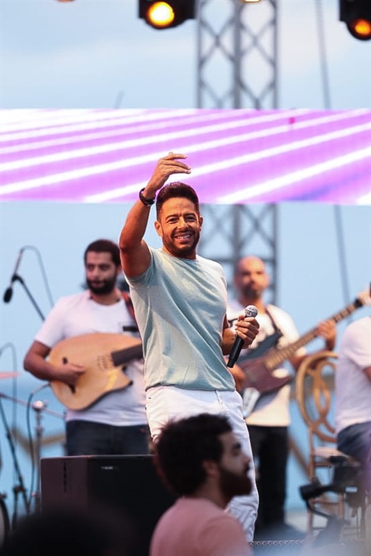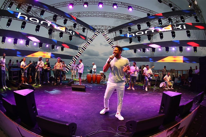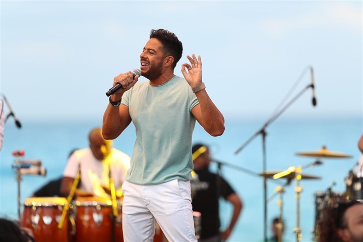 علي مسرح خلفيته البحر ومجهز بمؤثرات بصرية نهارية وليلية .. حماقي يتألق في ختام صيف ٢٠٢١ ويغني لحماته (صور)