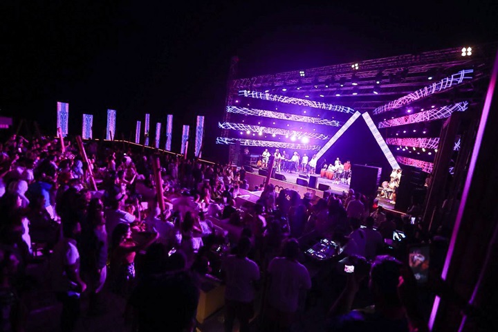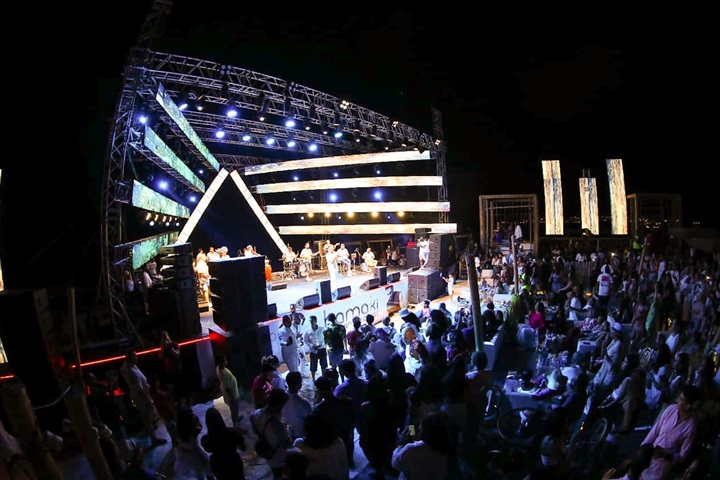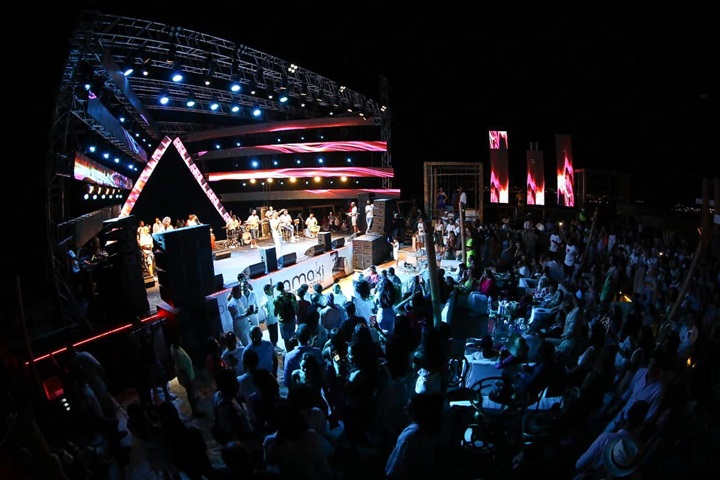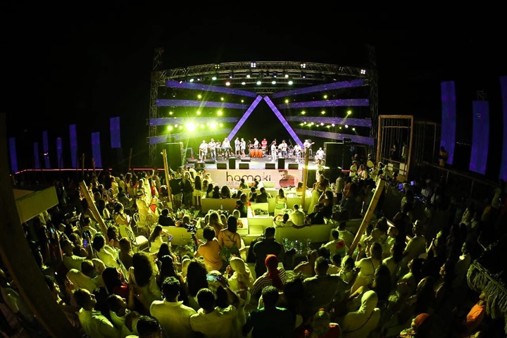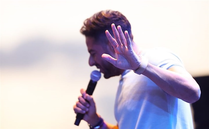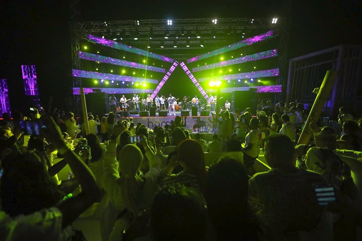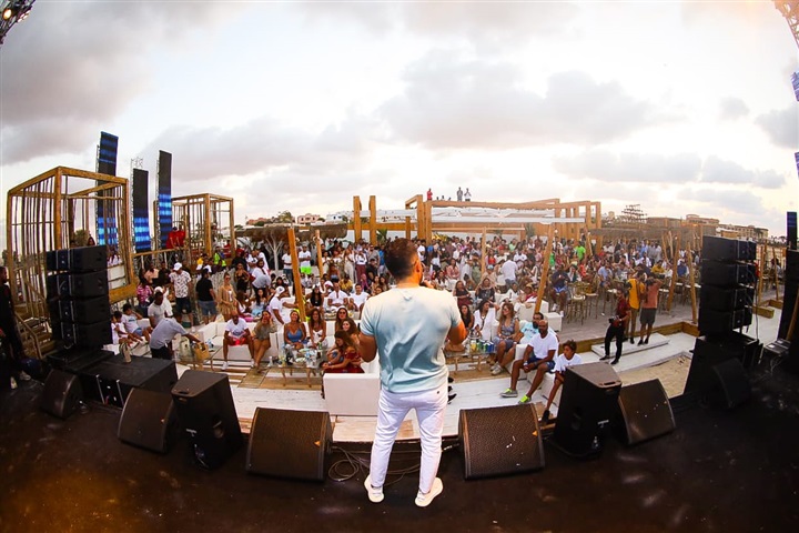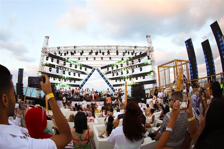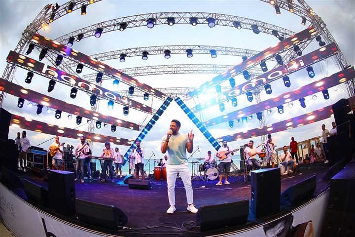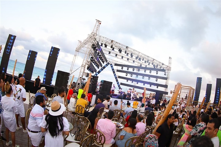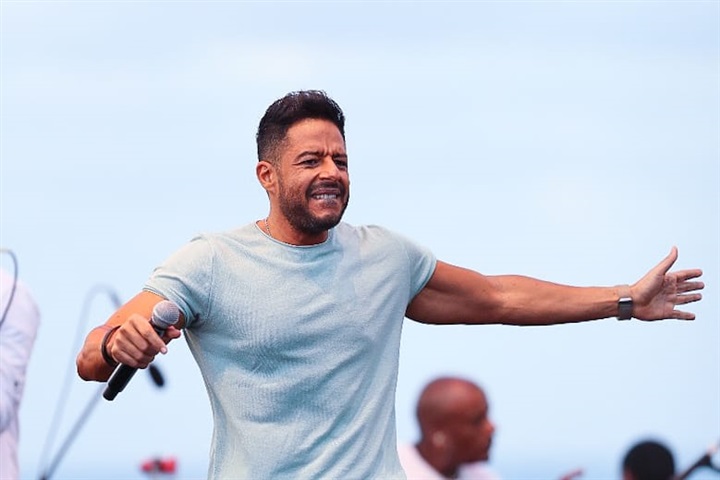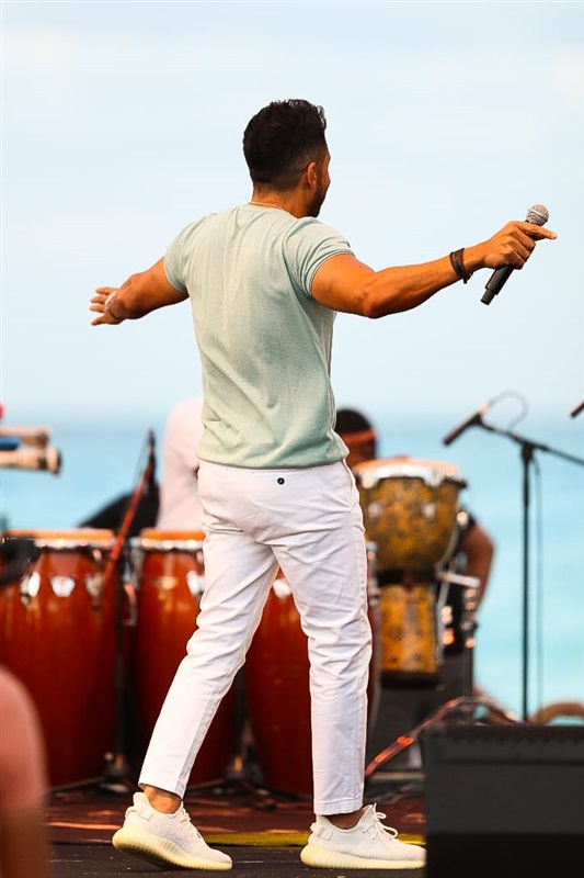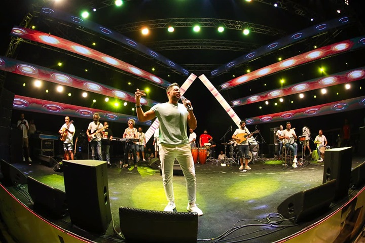 علي مسرح خلفيته البحر ومجهز بمؤثرات بصرية نهارية وليلية .. حماقي يتألق في ختام صيف ٢٠٢١ ويغني لحماته (صور)