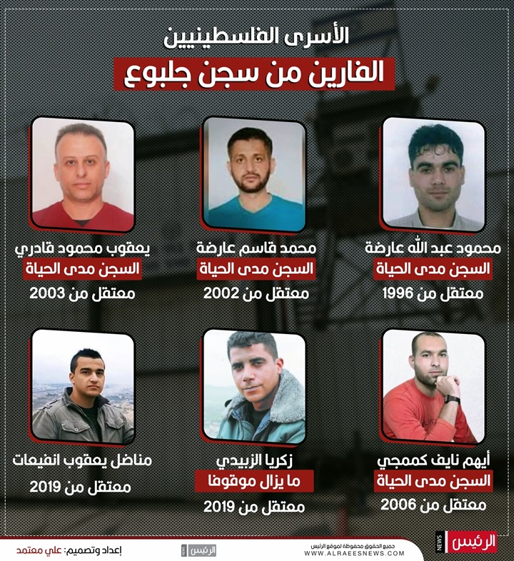 انفوجرافيك| الأسرى الفلسطينيين الفارين من سجن جلبوع