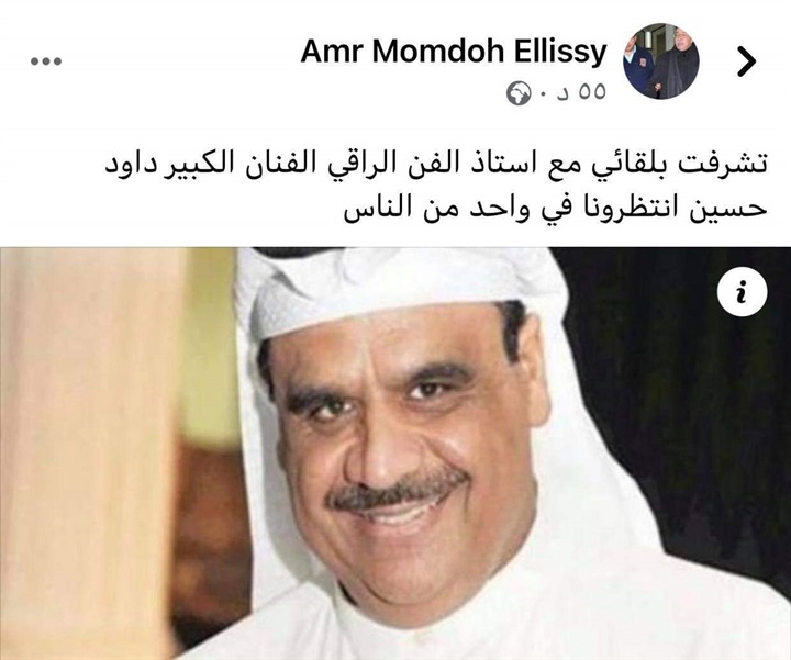 وأرفق داوود حسين الصورة، التي نشرها على حسابه الخاص على موقع “انستجرام”، بتعليق قال فيه: “تشرفت باللقاء مع محترف الأخلاق و التقديم”.