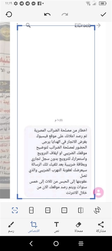 تلقيك تلك الرسالة سيعرضك لعقوبة التهرب الضريبي والذي تصل عقوبتها الى الحبس من 3