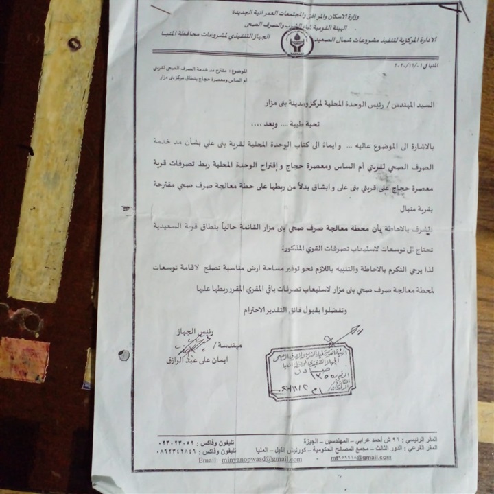 وطالب بإنشاء محطة صرف صحي، موضحا: "المياه الجوفية أصابت المنازل بالتصدع والانهيار ناهيك عن المدرسة التي أصبح فناؤها بحراً من المياه الجوفية، فحفاظا على الأسر والمنازل والطلاب نطالب بالاستجابة السريعة لتنفيذ محطة الصرف الصحي إلى جانب إنشاء المستشفى لتقديم الخدمات الصحية للأهالى والعزب المجاورة وتحسين وسائل المواصلات ورصف الطرق وتبليط الحارات".