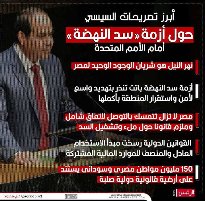 أبرز تصريحات السيسي حول أزمة «سد النهضة» أمام الأمم المتحدة..(جراف)
