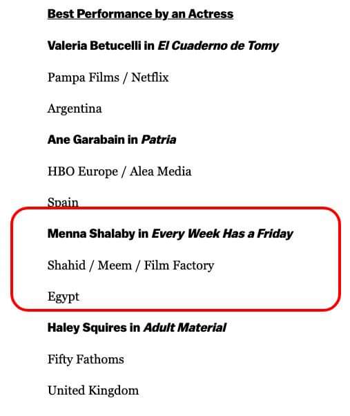 "الإيمي العالمية" ترشح منة شلبي لجائزة أحسن ممثلة عن مسلسل "كل أسبوع يوم جمعة"