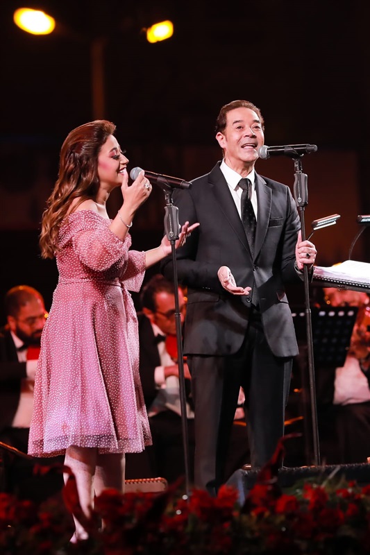 وعلى مدار أكثر من ساعتين وفي أجواء من سحر التاريخ أتيحت الفرصة أمام عدة آلاف من المشاهدين لمُحاكاة أجواء الزمن الجميل والإستمتاع بتراث السينما المصرية الغني والعريق مع صوت النجم مدحت صالح، والفنانة ريهام عبد الحكيم وبمُصاحبة المايسترو ناير ناجي وأوركسترا القاهرة السيمفوني، حيث إستمنع الحضور بالعديد ومن الأغاني التي تم تقديمها بتوزيع أوركسترالي جديد، ومنها "عشانك يا قمر" و"أهواك" لـ عبد الحليم حافظ من فيلم أيام وليالي، وفيلم بنات اليوم، و"قلبي دليلي" لـ ليلى مراد من فيلم "قلبي دليلي"، و "الدنيا ريشة في هواه" لـ سعد عبد الوهاب من فيلم "علموني الحب"، "حاجة غريبة" لشادية وعبد الحليم من فيلم معبودة الجماهير، وغيرها العديد من الأغاني الأخري الشهيرة والمميزة.