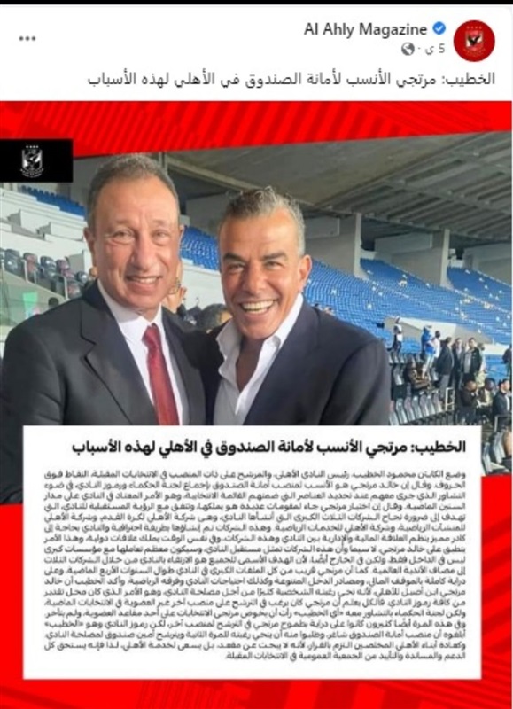 استغلال الصفحة الرسمية لمجلة الأهلي في دعم قائمة محمود الخطيب