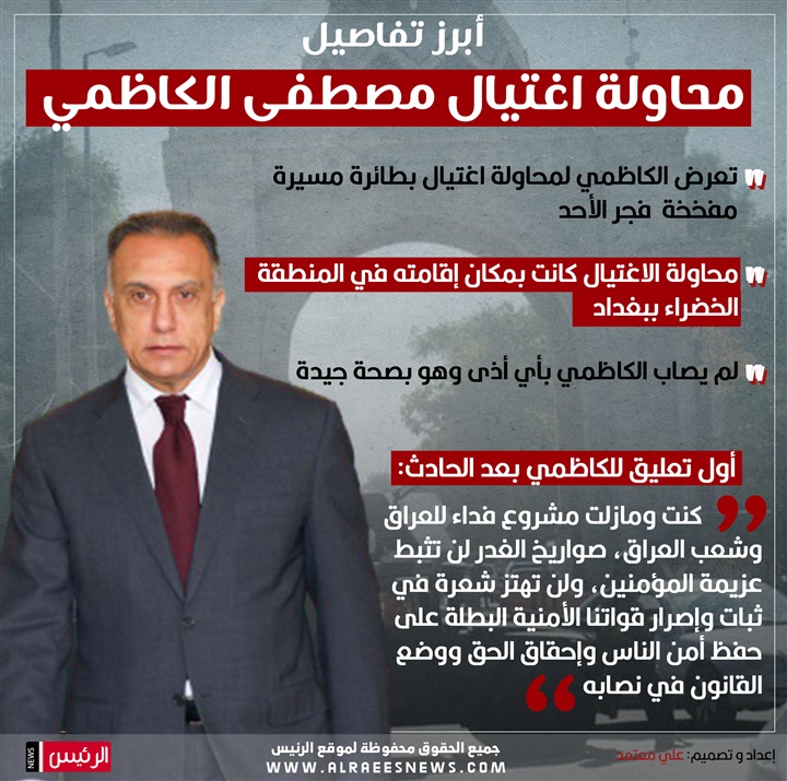 انفوجرافيك| أبرز تفاصيل محاولة اغتيال مصطفى الكاظمي