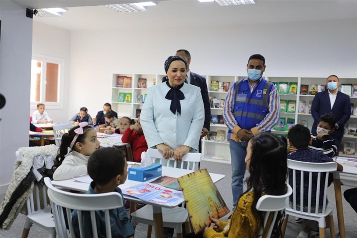 واستمعت انتصار السيسي إلى شرح عن تطورات تنفيذ مشروعات حياة كريمة بالقرية، ثم تفقدت المكتبة اللي تم تنفيذها بمركز شباب القرية الذي تم تجديده ضمن مشروعات المبادرة.