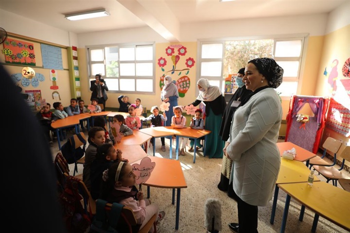 قرينة السيسي توزع هدايا على تلاميذ مدرسة شما بالمنوفية (صور)