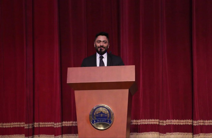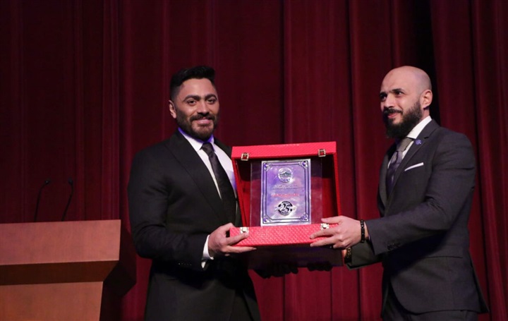 تكريم تامر حسني بجامعة مصر للعلوم والتكنولوجيا (صور)