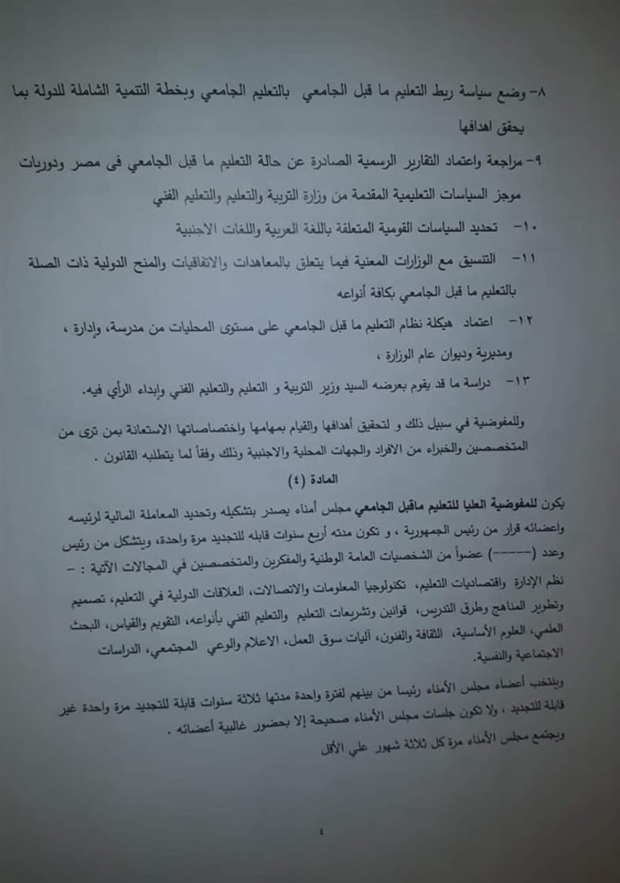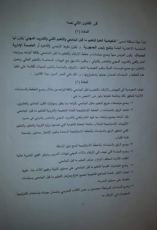 تفاصيل مشروع قانون لإنشاء المفوضية العليا للتعليم ما قبل الجامعي (نص كامل)