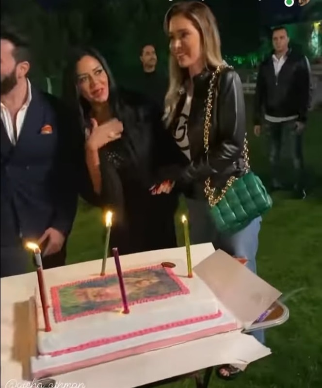 للخلف، لتجد عايشة فجأة "تورتة عيد ميلاد عليها صورتها"، ويحتفل فريق