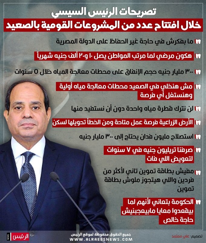 انفوجرافيك| تصريحات السيسي خلال افتتاح عدد من المشروعات القومية بالصعيد