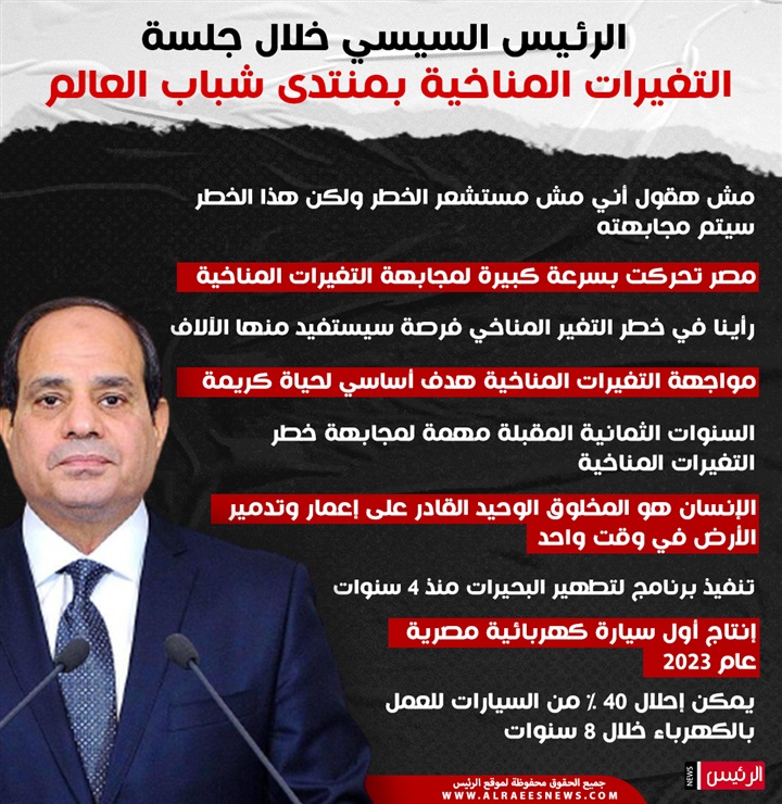 انفوجرافيك| الرئيس السيسي خلال جلسة التغيرات المناخية بمنتدى شباب العالم