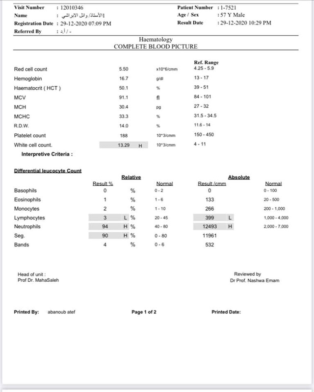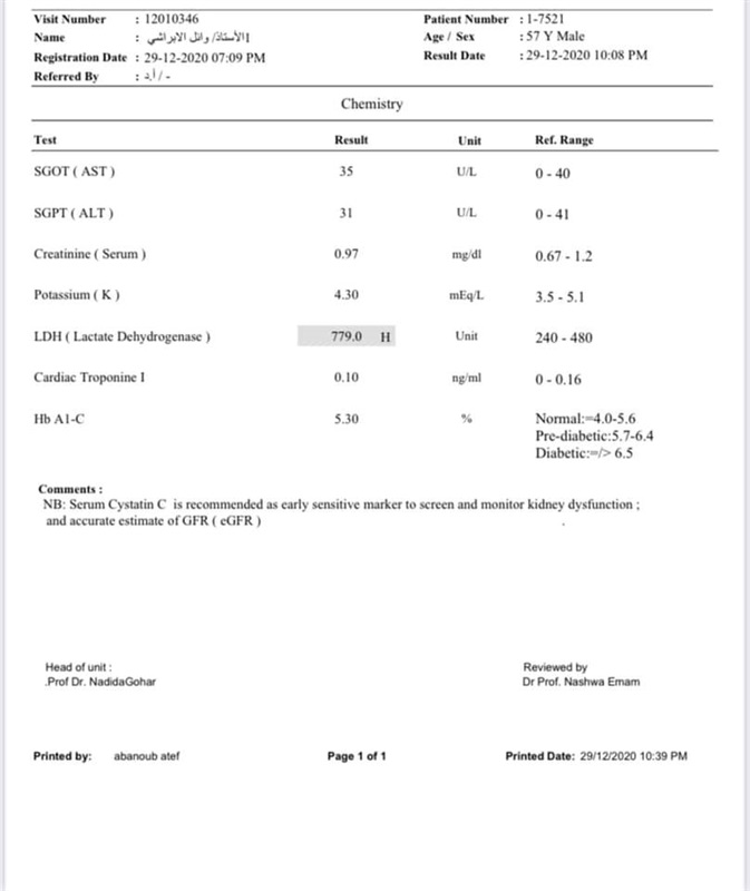 779و LDH (مرفق الأرقام والصور) وصلت إلى معدلات مرعبة من الارتفاع مما يدل على أن الفشل التنفسي الكامل من الالتهاب والتليف قادم لا محالة".