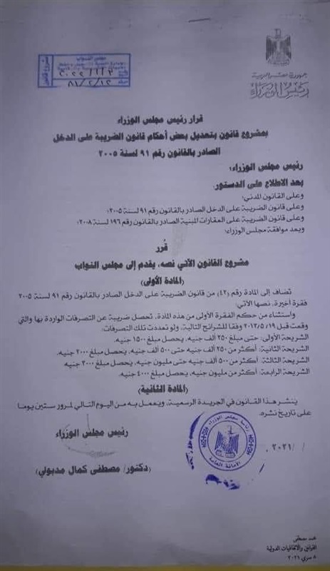 حصل "الرئيس نيوز" على مشروع قانون تعديل ضريبة الدخل بشأن ضريبة التصرفات العقارية لإنهاء الخلاف حول تسجيل العقارات قبل تاريخ 19 مايو 2013.