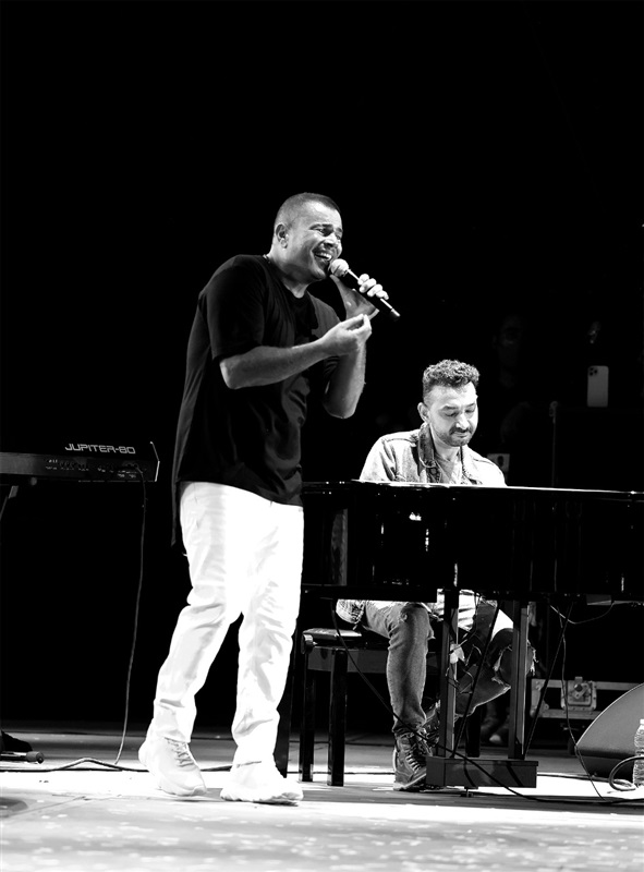 وفاجأ الهضبة جمهوره بدعوة مجموعة من صناع أغانيه للصعود الى المسرح وتحيتهم، حيث قدم الملحن عزيز الشافعي والشاعر تامر حسين الذين غنيا معه أغنية "انت الحظ".