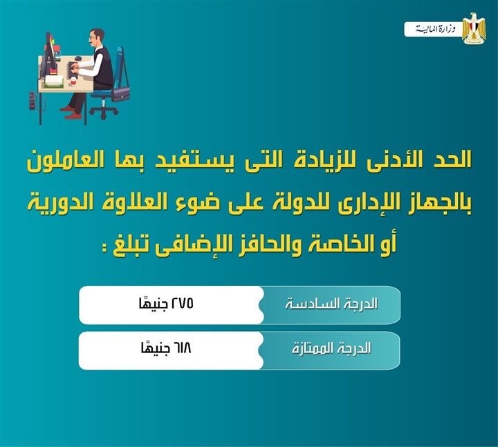 وكان الرئيس عبدالفتاح السيسي وجه الحكومة بزيادة الحد الأدنى للأجور بداية من أول يوليو المقبل إلى 2700 جنيه بدلاً من 2400 جنيه، والتي يتبعها زيادة في الدرجات الوظيفية المختلفة.